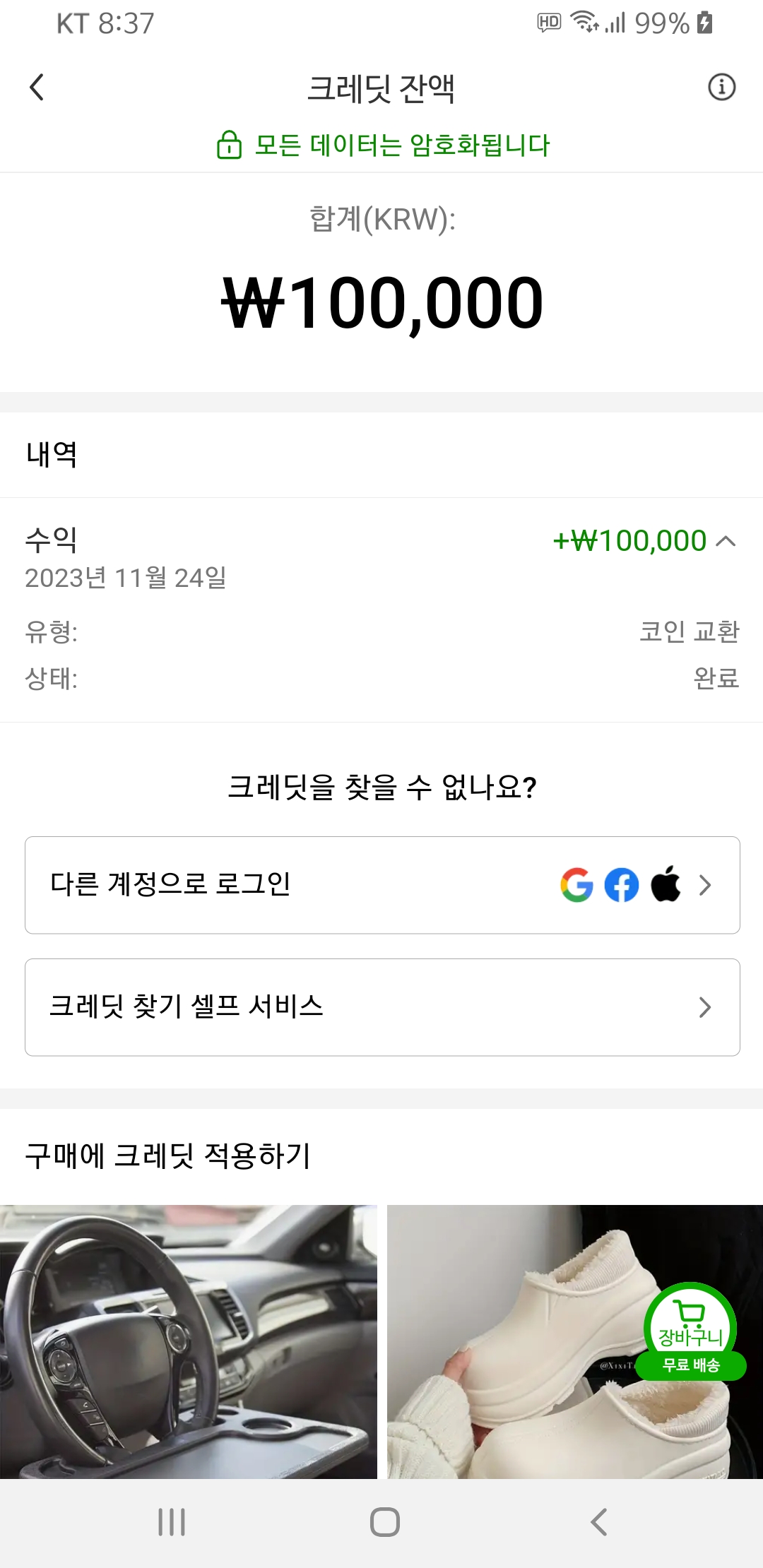 총 ₩201,000 크레딧을 교환했었습니다!